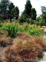 Стиль розария - типично английский, пейзажный. Розы растут группами в сочетании с многолетниками. Много злаков. В основном здесь представлены сорта английских и ирландских селекционеров - Харкнесса, Фраера, Диксона, и конечно же, английские розы Дэвида Остина.