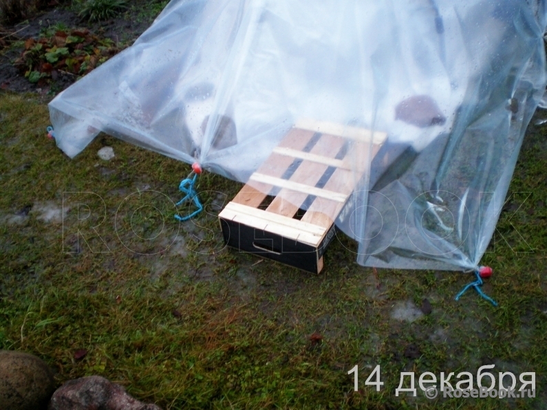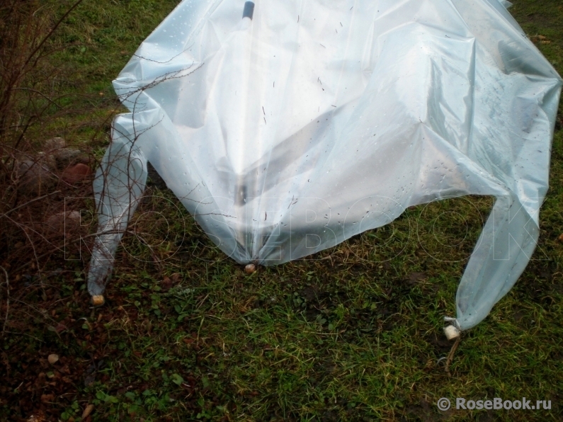 В пленку вставляю пробки,обвязываю туго веревкой и закрепляю шпильками 30-35см из толстой проволоки,слегка сжимая их как пружину.Такие шпильки в подмерзжей земле удерживают пленку даже при штормовых ветрах.Пленку по бокам по длине и по коньку натягиваю туго.