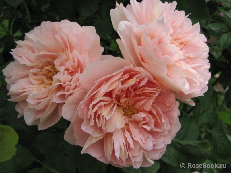“Jude the Obscure” “A Shropshire Lad” “Brother Cadfael” “Charles Darwin” “Wildeve” “Tradescant” “The Prince” “L.D. Braithwaite” “Fisherman’s Friend” “Abraham Darby” Последний сорт является и самой уязвимой английской розой, и в то же время самой прекрасной. Он, к сожалению, очень сильно подвержен грибковым болезням. Кроме того, в последние годы подмечено, что именно этот сорт первым поражается ржавчиной и распространяет её по розариям. Большой недостаток английских роз - неустойчивость многих из них к дождям и влаге. Если в момент цветения на неделю зарядили дожди, то вообще можно лишиться всей красоты. Густомахровые цветки подгнивают и не распускаются. И это не удивительно, ведь такие сорта, как “William Shakespeare 2000” и “James Galway” имеют в каждом цветке по 120 лепестков, а один из самых махровых “Spirit of Freedom” - почти 200. Понятно, что промокшим цветкам уже не хватает силы распуститься. Очень плохо переносят дожди цветки с помпоновидной формой, их наружные лепестки слипаются после первого же дождя и не дают бутону раскрыться.