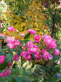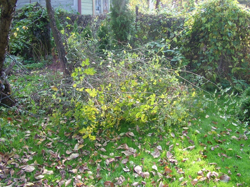 Железный крючок изготавливаю из куска довольно толстой проволоки (крючок можно изготовить из электродов для сварки – продаются на любом строительном рынке – прим. Qaz1971). Втыкаю его в землю (сколько войдет), а верхняя его часть огибает побеги. Такой крючок можно воткнуть в почву и привязать к нему связанные побеги. При необходимости крючок заглубляю. Если нужно, жгут из побегов роз стягиваю в нескольких метах веревкой. Побеги аккуратно пригибаю именно при положительной температуре, и не все одновременно, иначе они поранят друг друга шипами. Сорта плетистых роз с толстыми прямостоячими побегами (например, Heideberg) нужно пригибать с особой осторожностью. Обычно я делаю это в 2-3 приема. Вначале слегка наклоняю побеги в сторону, противоложную изгибу у их основания. В противном случае в месте изгиба происходит надлом. Обычно обрезаю розы после 15 октября. В нашей климатической зоне (Стефан Федорович проживает в Республике Беларусь - 5 зона - примечание qaz1971)в это время короткий день и довольно прохладно. Поэтому не нужно бояться, что обрезка вызовет рост молодых побегов. Один из вариантов укрытия роз – использование щитов из тонких досок или горбыля. Высота их не больше 80 см, длина – любая. Щиты сбиваю, не беспокоясь о том, что будут щели. Основная их функция – крепкий каркас и сглаживание колебаний температуры. Для устойчивых к болезням плетистых роз (например, Dortmund) не опасно соприкосновение побегов и щитов, так растение не поражается ожогом или раком коры. Остальные розы желательно пригнуть и связать в жгут так, чтобы как можно меньше побегов касалось стенок укрытия. В местах касания долго задерживается влага, а это чревато заражением наиболее опасной для роз грибковой инфекцией – раком коры.