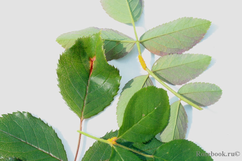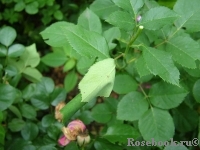 Листья становятся «ажурными», с выеденной мякотью, остается только сеточка жилок. Розы медленнее нарастают, побеги деформируются. Вредитель – маленькие бледно-зеленые гусенички с рыжей головой.