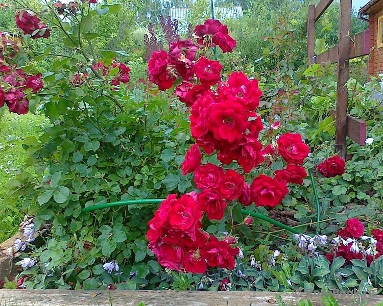 Да, со многим согласна. У меня Champlain уже 6 или 7 год. Заказала просто так, потому что не знала, что еще заказать. Они тогда только появились в "подворье". Наросла года через 2 до метра высотой. Сейчас это большой куст, 1,5м на 1,5м. Цветет постоянно, ей что дождь, что жара. Под тяжестью цветков и от дождя ложится на землю. Ее осенью не режу и не укрываю, а вот весной режу сильно. Стала резать потому, что она превратилась в монстра, очень густого монстра и стала цеплять МР, правда это скорее всего было ЛМР (я так и не поняла, если честно), потому что после обработки и обрезки она прекратила ею болеть. Больше я ее не обрабатывала, а она не болела. Она прекрасная роза. И в одиночной посадке она бы выглядела лучше, но я не подумала о таких размерах и посадила ее совместно с другими цветами, теперь жалею, но пересаживать не буду. Так же как и можжевельник и sibelius. Вот точно, нет опыта - спроси. А я понатыкала, теперь заросли.