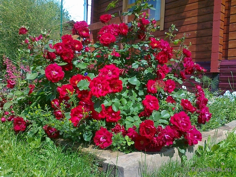 Champlain цветет без отдыха. Начало цветения - цветами покрыт весь куст. Все лето неизменно яркий букет.