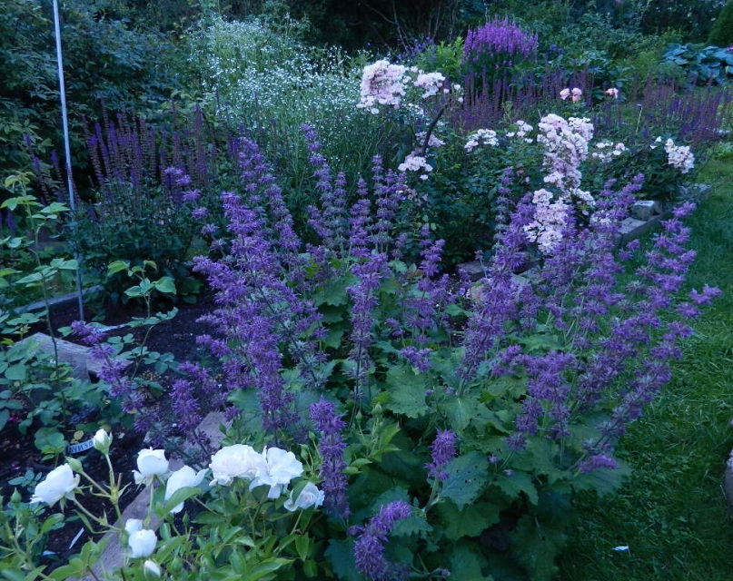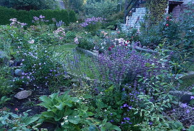 Алёна, очень интересно рассматривать розарий! Тоже люблю синий цвет в саду...