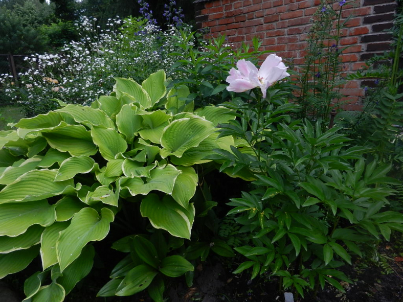 Прекрасно смотрелся бы пион Прери Муун- бело-зеленоватый, с очень красивыми чашками цветов. Он у меня есть, но нет сил туда запихивать- все места заняты)