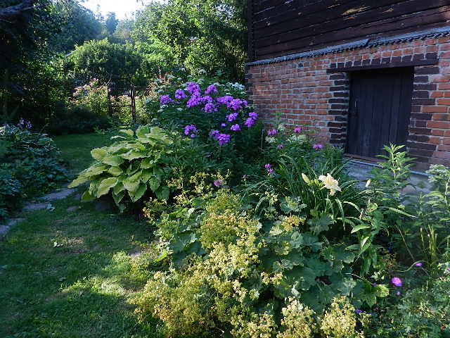 Началось с манжетки и шартрезной хосты. К сожалению у подобных хост есть свойство: в тени шартрез, на солнце -яркая желтизна. кот. мне не нравится. А к осени совсем како-то усталый вид(