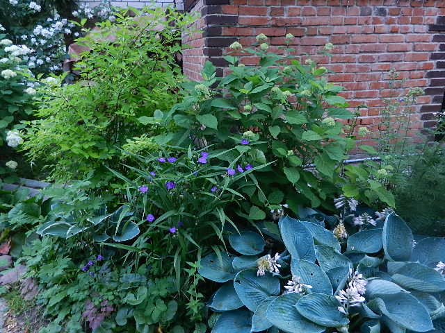 Тему очень поддерживает чубушник желтолистный- в тени он шартрезный.