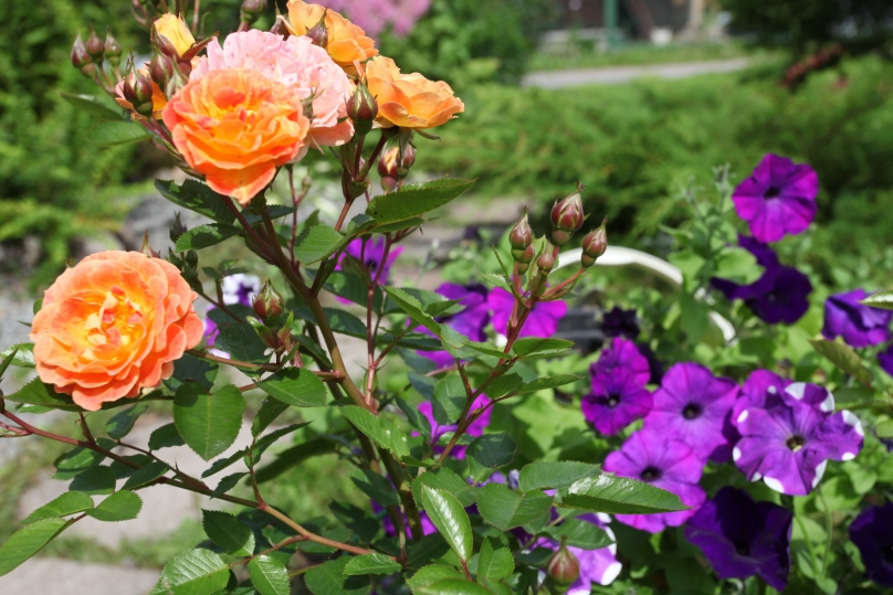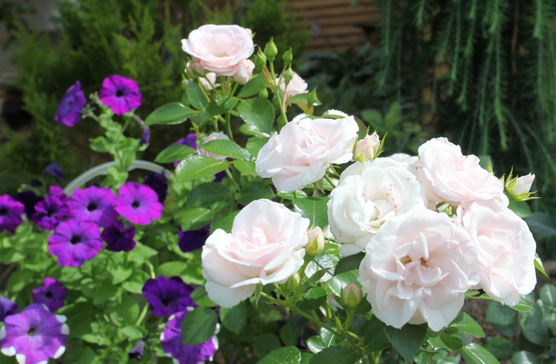 Aspirin Rose и петуния