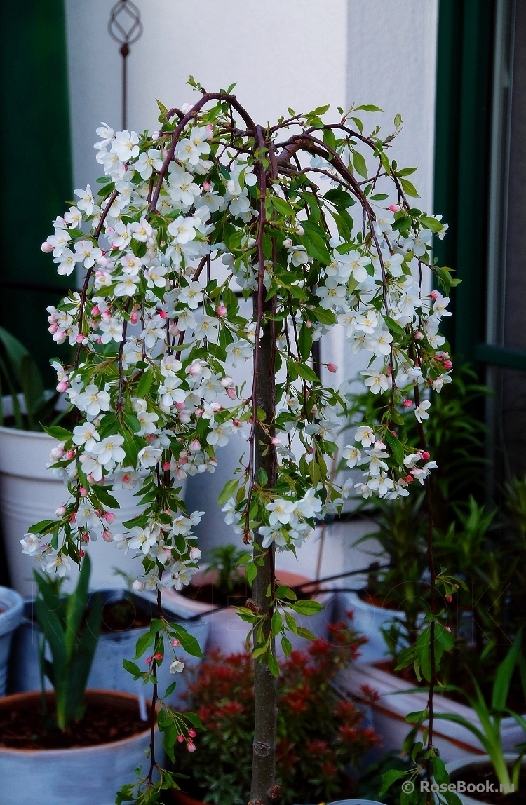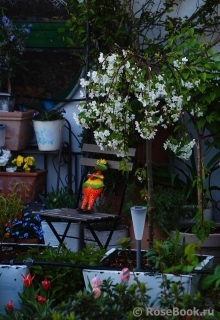 | | В сумерках беловато светилась декоративная яблоня Fontana. |