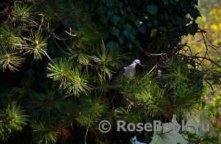| | Когда Гули нет, горлицы занимают стратегические позиции на деревьях напротив и дремлют вполглаза - следят за кормушкой. |