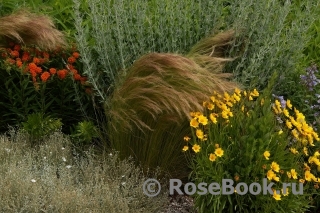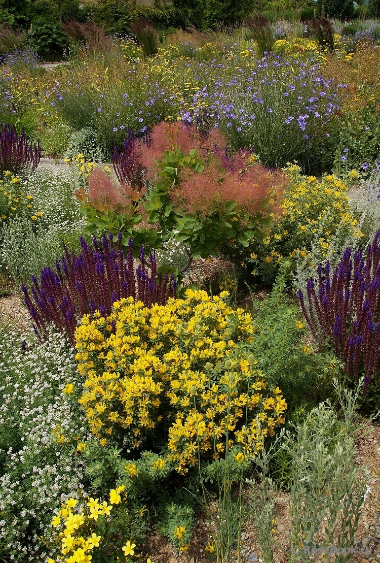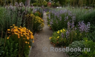 клумбы с травами и злаками, далее - композиции с этих клумб
