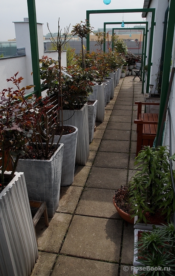 Вообще-то весна у нас на редкость поздняя, прохладно-холодная. Видимо, на подработках от имени теплой зимы. Но розы все благополучно заколосились, налились соками, бутонами и свежими зелеными силами. На сей день почему-то нет листьев только на новенькой my girl... и - не почему-то, а понятно почему, так как посажен позже всех - на штамбе-метле la villa cotta, но этот штамбик подает признаки жизни, так что "торопиться не надо". Тюльпаны взошли, некоторые даже и расцвели, фиалочки источают сладкие ароматы, примулы не отстают от них в теме парфюмизации, так что, как говорится, что еще надо для счастья.  | | ранункулюс - все так же напоминает розу, ну а цвет, цвет трудно передать на камеру. насыщенный, короче. |