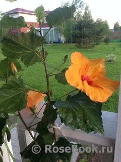 А вот зацвел гибискус - отпрыск почившего в бозе прошлой зимой большого куста. Я успела укоренить его черенок, прошлый год он как-то все очухивался, а в этом году стремительно пошел расти и зацвел! Теперь жду, когда отцветет, чтобы обрезать, а то уж очень вытянулся уже. пыталась прищипывать, но он все растил новые листья на месте прищипнутых :)))