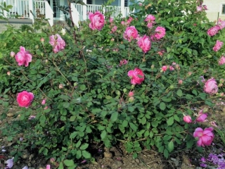 Вчера пошла копать ямы для осенних посадок - хочу весь ряд продлить до забора. 4 ямы уже выкопаны с весны, засыпаны смесью моего суглинка, покупной земли с торфом и навоза. И все место под розарий я в начале лета накрыла картонкой и засыпала перепревшим навозом, чтобы избавиться от газона в этом месте. Места под розы разметила колышками...