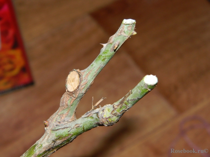 Левый побег вырезать на кольцо, вымочить саженец в системном фунгициде, завернуть во влажную бумагу и в холодильник. Первый саженей для профилактики тоже можно, но он вроде здоров, его достаточно просто выдержать в воде с глюкозой.