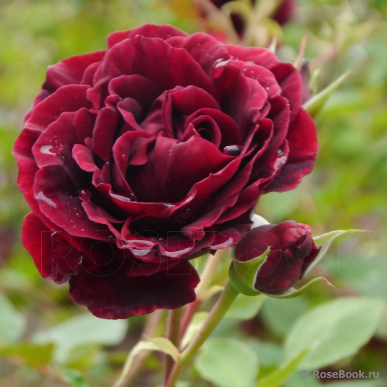И вот май 2019. Роза стала еще шире и выше, вся покрылась бутонами, при этом не забывая отращивать новые побеги. Масса куста оказалась такой значительной, что он дважды в ветреные дни опрокидывал на себя опору. К счастью, поломалось только несколько цветоносов. Цвет расцветшего цветка - красно-черный,как у Black Magic. И такая же бархатистая поверхность лепестков. Старея, цветок действительно приобретает малиновый оттенок, внешние лепестки чернеют. Листья крупные, зеленые, полуглянцевые. Красоту цветущего куста мой смартфон передать не в состоянии. Так бы села и сидела перед этим великолепием. За него можно простить однократное цветение, продолжалось бы оно подольше. С тревогой слежу за разыгравшимся ветром - вдруг опять опрокинет. В следующем году сделаю для нее прочную опору, сформирую ее колонной.