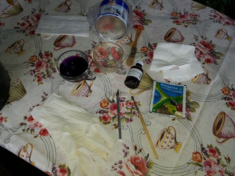 - Готовим лекарство : фундазол 1/4 пакетика и несколько мл алкидной краски
