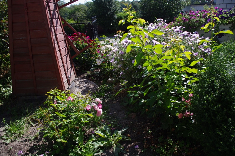 Кое-кто поместился в розариях, культурно. А те, кому места не хватило, заняли остатки огорода на моем участке. Когда высадила, указатели сортов были выше, так сказать, «роз».