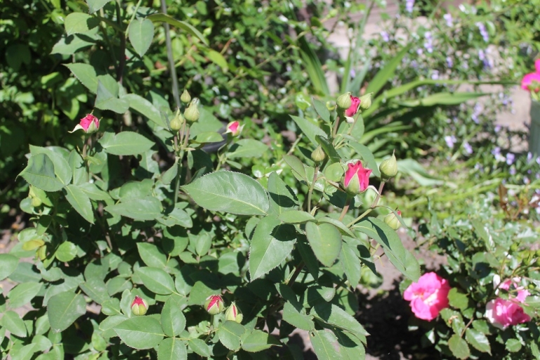 Если честно, то праздник уже подпорчен. Бедолагу Sharifa Asma грызут и жуют жуки всех размеров и окраски. Хожу собираю бронзовок, оленку и еще каких-то маленьких черненьких жучков. Очень жаль, роза в этом году набрала силу, могла бы показать себя во всей красе, а пока вместо шикарных фарфоровых цветов жалкие тряпочки.