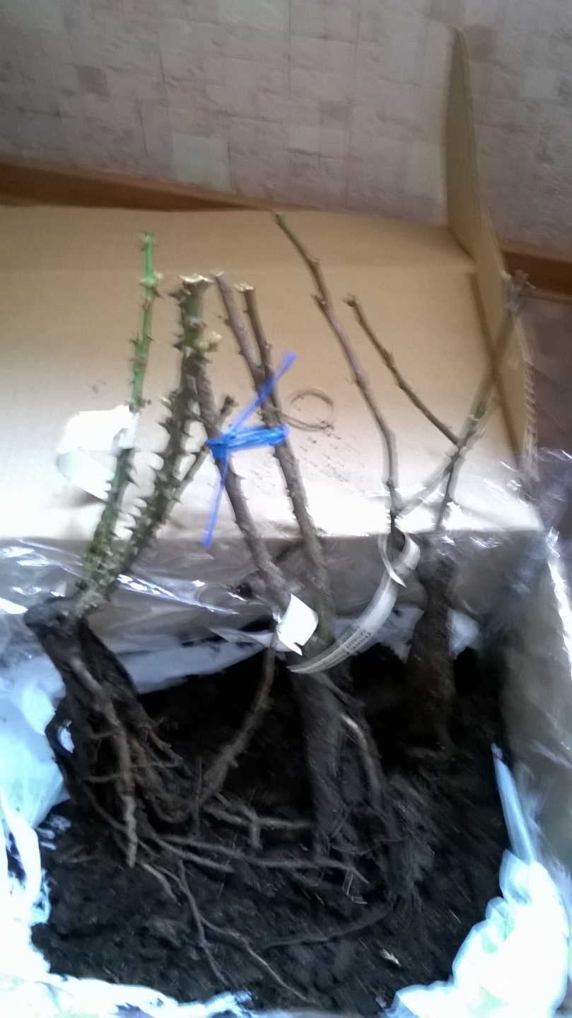 31 марта получила посылку от Розомании (13 роз+ 2 подарка). До Москвы посылка шла 5 дней. Розы в основном крупные, корни хорошие. Только Крымская ночь и Поль Гоген мелковаты, у Крымской ночи большие ростки, поэтому придется высадить. Остальные засыпала грунтом и поставила на балкон.