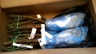 28 марта получила розы от Розафлоры (12). Посылка шла в Москву 7 дней. Некоторые почки проснулись, на одной розочке есть ростки 4-5 см, их прищипнула. Розы связаны по 6 штук, общая длина 50 см, едва поместились в посылке.