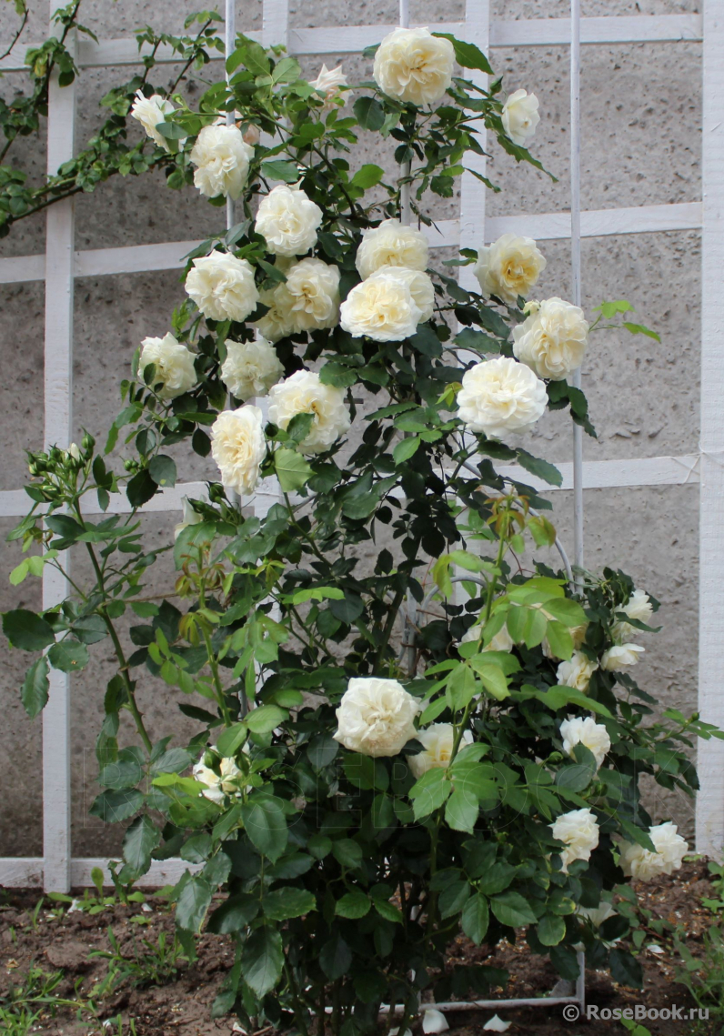 Palais Royal отличная светлая роза. Гибкие плети. Компаньон клематис PURPUREA PLENA ELEGANS.