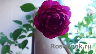 Забавно, что производитель называет сорт срезочным. Такого странного куста я еще не видела. Все в точности как заявлено - ветки растут относительно основного ствола под углом 45 градусов. Не куст, а дерево :) И вот это самое дерево, сидя в горшке на подоконнике, выпустило мне ветку, для которой пришлось изобретать подпорку. Такого желания любой ценой дорасти до окна я еще не встречала :)
