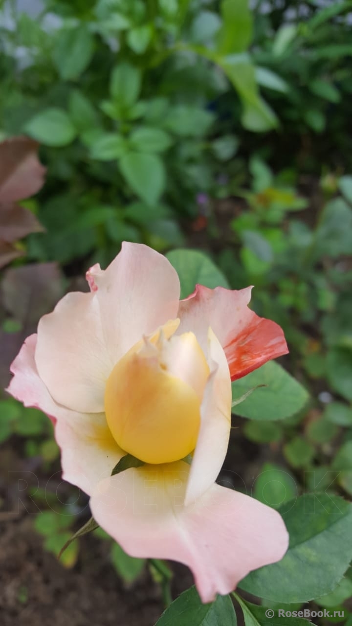 Сорт необычен своей окраской. Роза трехцветная. Центр - желтый, половина отклоняющихся лепестков имеет кремовый оттенок, вторая половина делится на лепестки кремовые и полосатые. В карточке производителя указано, что именно так и должно быть. Запах имеется, на два облачка. Де Шерил пахла гораздо насыщеннее. Прирост кустика за два месяца был очень неплохим, и главное, что базальные побеги дала, а не ввысь поскакала. ЧП вроде не подцепила, сейчас уже и не скажу наверняка.