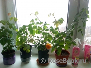 Мы обычно уезжаем с дачи в конце октября, и черенки едут вместе с нами. Начинается самый трудный период: убывает день и включается отопление. В нашей квартире очень жарко и у меня в спальне, где на окне живут черенки, почти постоянно отключена батарея. Температура около окна держится в пределах 16-20 градусов, когда в комнате +25. В сильные морозы открываю батарею на день, а ночью опять закручиваю. Раскаленная батарея + плотно задернутые на ночь шторы - верный способ загубить черенки! Итак, особенности зимнего содержания роз: