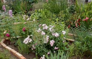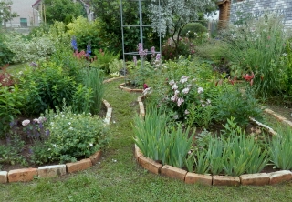 Добавлю, кирпичи будут прикрыты. Пока идея рассадить карпатский колокольчик, у меня есть голубой и сине-фиолетовый, цветут все лето до снега, красиво свешиваются. Конечно же если бы проходы пошире были, пусить бы почвопокровку как рамку, но шипыыыы...Могу только одну на самый перед, в ноги Ботичелли