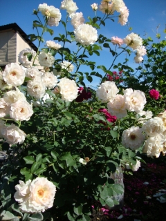 Это сказочная роза под названием Rokoko. Моя молодая фаворитка с фейерверком крупных нежнейших цветов и необыкновенным ароматом. Габитус куста претендует на крупного лидера. На кусту распускаются восхитительной красоты цветы с волнистыми краями и аристократическими тычинками в центре, которые держатся необыкновенно долго, не обращая внимания на непогоду. В нашей 2 зоне проявила себя очень достойно, к тому же превосходно черенкуется.
