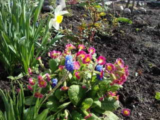 Несмотря на все природные нюансы, участок освободился от снега. И хотя розы перезимовали на троечку: выпревание, считаю от излишнего укрытия в два слоя агрилом, а затем, после раскрытия роз еще и ИО, поэтому обрезка большинства роз до пенечков в 5 см; все розы тронулись в рост. А самое главное, что из вновь посаженных 56 роз, активный рост у 54. Одна розочка была с подопревшими корнями,вторая - осматривается и думает. Пытаясь осмыслить причину положительной тенденции развития сада, пришла к выводу, что титанический труд по осушению участка не прошел даром. 26 лет назад участки нарезались на болоте, с лесом, непроходимым кустарником и болотными кочками. Когда все раскорчевали, то обнаружили, что плодородной земли всего на пол штыка лопаты, а дальше идет прессованная синюха, воде уходить некуда и без дренажных канав отвода воды ничего не получится. За эти 26 лет было закопано примерно 10 КАМАЗов шлака и 4 машины гравия, привезено столько же земли, торфа и куряка. Участок поднялся и осушился, особенно это я ощутила весной 2013г. Прошедшей зимой снега было много и лежал он до 20 чисел апреля метровым слоем, а затем стремительно растаял за неделю. Копнула грядку, а земля готова к посадке, влага в норме. Я просто была поражена, что за неделю влага ушла, хотя снежный покров зимой достигал 2 метра. Муж мой к дренажным работам относился всегда со смехом, говорил, что остановись, хватит копать, сейчас уже шахтер вылезет из твоей канавы. И вот мне воздалось, я счастлива, что ранней весной по дорожкам участка можно ходить в туфельках. Центральную дорожку поверх дренажа мы выложили спортивными матами, а все боковые дорожки засыпали щебнем, теперь никакой дождь не страшен. Конечно и грядки пришлось приподнять и выложить бордюр шлакоблоками из разобранного старого дома, а на месте его вырос новый дом их бруса. В связи с этим пришлось занаться перепланировкой участка. Сад постепенно преображается и расцветает, несмотря на то, что снег все порошит до сегодняшнего дня. Душа поет, радость переполняет и так и хочется всем садоводам, созидателям красоты, раздать по кусочку радости.