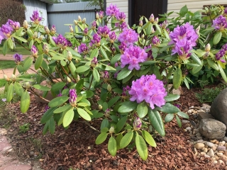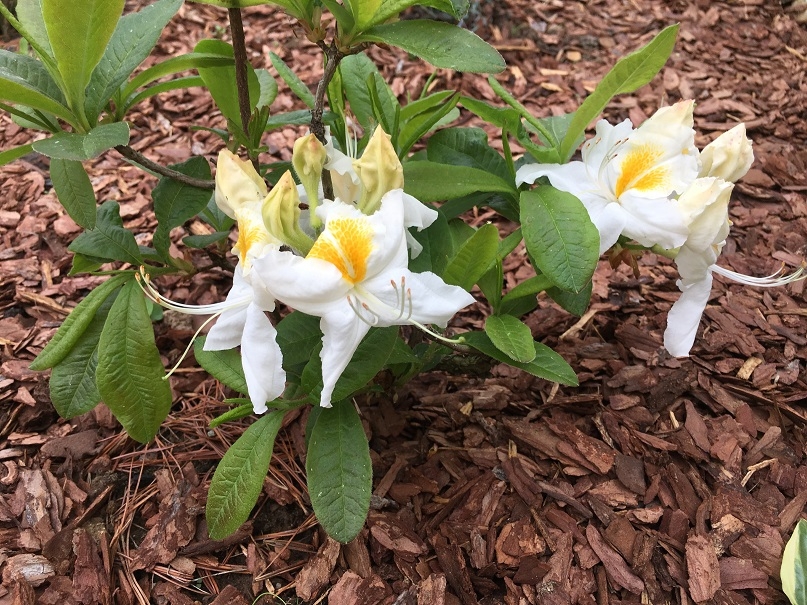 Рододендрон, пересаженный три недели назад не заметил этого и теперь радует нас своей красотой, азалии тоже цветут