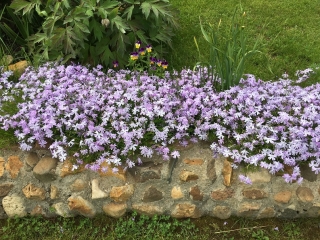 Клумба, думаная-передуманая зимой и начатая по весне, перестает напоминать стройку и постепенно начинает походить на задуманное))) Кусочек с розами пока не покажу - там стройка)))