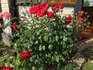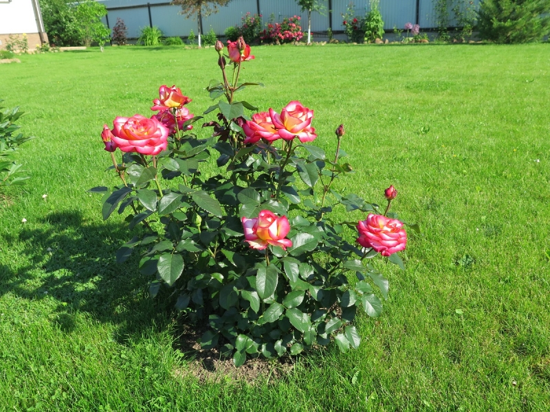 Первая – это Ernest H. Morse, чайно-гибридная, Kordes Германия, 1964. Куплена в Русрозе, посажена в июне 2015года. В первое свое лето почти не наросла, но цвела огромными цветами.