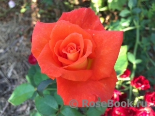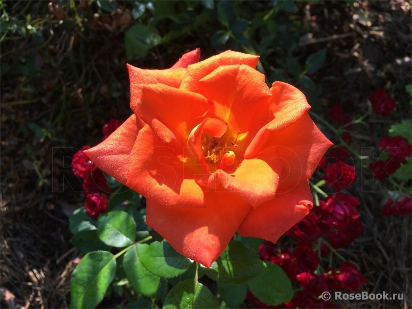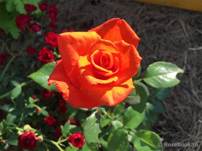 Следом, 15 августа, зацвела «Ванчик». Роза шипастая, шипы светло-коричневого цвета, средние, листва темная, глянцевая с очень мелкими зубчиками по краю листа. Молодого прироста пока нет. Лепестки с изнанки оранжево-желтые, середина цветка подсвечена желтым. Не пахнет. Думаю, завтра цветок облетит. В роспуске желтизна исчезла, цветок стал ярко-рыжий, теперь, на исходе появилась розовина и веснушки. Как раз выложили в ЭР фото розы Моники, очень похожа, да и описание в карточке сорта во многом совпадает. Но моя пока на невысоком цветоносе. Кустик ростом 35 см, цветок - 9 см. Второй « Ванчик» пока только окрасил бутон, у него корни заработали, прирост бордового цвета.