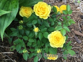 С осени 2009 года у меня растет миниатюрная роза, без названия, приобретенная в магазине как горшечная роза Кордеса. За все эти годы выше 20 см никогда не вырастала, кустик компактный, шаровидный - 20*20 см. Цветы махровые, достаточно плотно набитые, в роспуске ярко желтые, при «старении» выгорают до бледно-лимонного цвета, почти белого, чуть приоткрывая серединку. Цветок размером 5 см, без запаха, держится 2 недели, далее самоочищается. Лепестки отогнуты наружу, округлые, в середине с выступом-зубчиком, более выраженном в полуроспуске. Листва светло-зеленая, молодой прирост более светлого оттенка. Шипов нет, повторно цветущая. Цветы от дождей не портятся, но роза подвержена ЧП, быстро восстанавливается после облетания листвы. Цветение с перерывами в 2-3 недели, до заморозков.