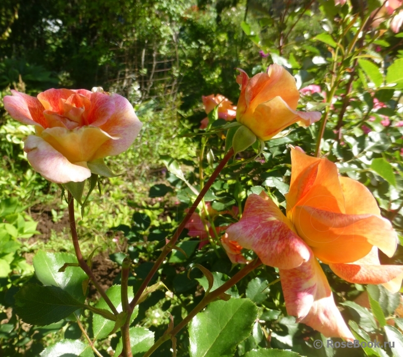 Полюбуйтесь на эту изменчивую веселую красавицу - флорибунда Michel Serrault! Я называю ее "ситцевой" розочкой, благодаря ей сад как бы примеряет простое ситцевое платьице, которое саду очень идет! Кто-то найдет в ней недостатки - цветок быстро раскрывается, но, на мой взгляд, это её не портит. Перенесет испытание дождём, и вновь ее милые цветы будут улыбаться солнцу!