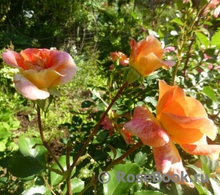 Еще одна прелестная флорибунда, самая молодая из розочек этого списка, ей всего лишь третий сезон - Bentheimer Gold. Домашнее имя "Кудряшка Сью" - озорная, кокетливая, усыпанная кудрявыми цветочками так, что иногда и листьев не видно. К сожалению, не нашла лучшего ее фото. Настоящее золото!
