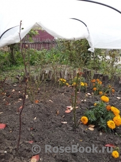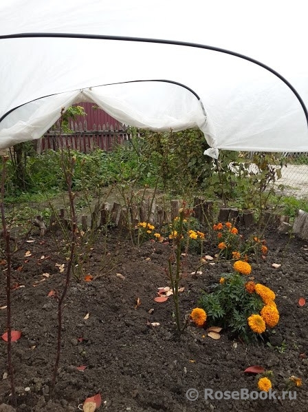 Укрытие на фото временное,от дождей.Была вынуждена поставить потому что в сентябре от избытка влаги бутоны и уже распустистившиеся розы сгнили.