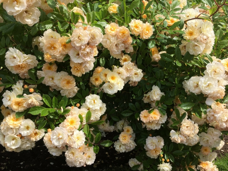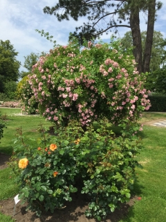 Oangara, действительно удивительная по размеру роза. Высота дерева, на которое она забралась около 10 м. На табличке надпись: Chevy Chase(Souleiana-Hybride, Hanson-Bobbing/Athins 1939)