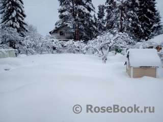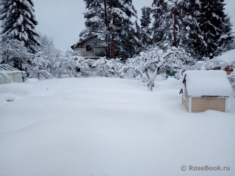 Сын был на даче, сделал фотки. Снега очень много. Розы все упакованы, как сказал Саша.