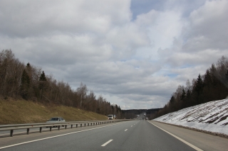 А когда ехали по шоссе, уже одна сторона дороги была совсем зелёной.