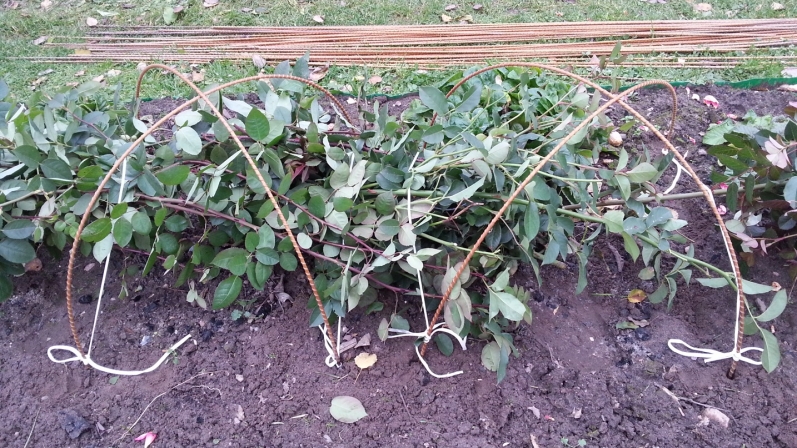 Еще одна канадка, которая раньше не укрывалась John Cabot, теперь попадает под укрытие с другими, недавно посаженными розами.Остальные все упакованы на зимний период.