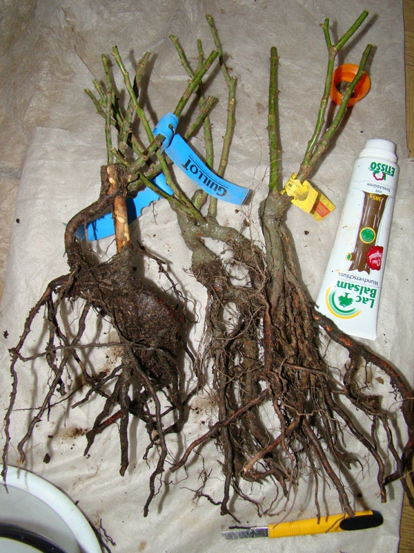 25янв привезли курьером мой заказ в Москве в МУ: Chantal Merieux, Gene Tierney, Purple Lodge. Хранила в холоде до привоза домой.29,вчера, стала скорее их освобождать от плёнки. Вся торфо-опилочная смесь, в которою упаковали корни, пронизанаслегка паутиной плесени и запах очень затхлый плесневелый. Вопрос: когда это успело произойти- январь, только упаковали в МУ. В чистом торфе такого не произошло бы, виноваты оч мелкие опилки Почему ничем не обработан упаковочный грунт?? Это первое, поправимо. Второе оказалось намного серьёзнее и безнадёжнее: у Шанталь Мерьё и у Джин Тирни кора подвоя вся оказалась отставшая от ствола. Такой подвох даже при покупке трудно обнаружить. Сняла эту драгоценную мёртвую "кожу", замазала стволы бальзамом немецким, обрезала значительно все побеги (израненные) до почек, корни тоже. Напитала в растворе эпина и фитоспорина, засыпала своей землёй, упаковала в лутрасил корни в земле, побеги тоже, да закопала под снег до апреля...
