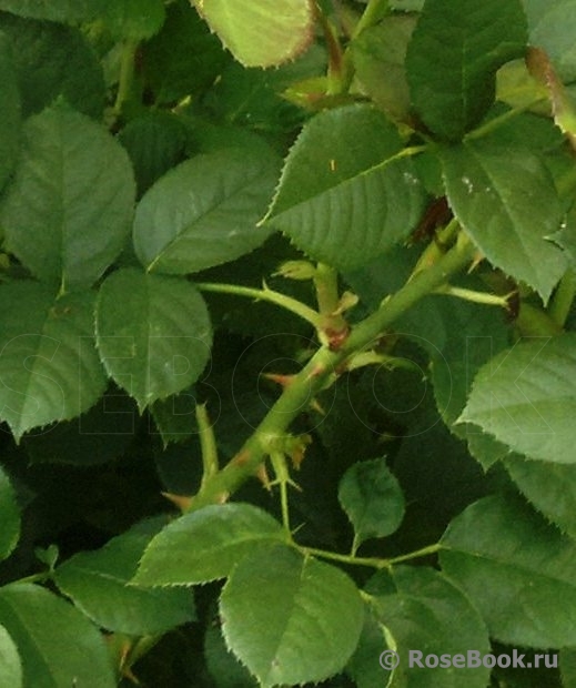 Мощный куст примерно 80-90 см, зеленая глянцевая листва. Бутонов в кисти 2-5, цветет продолжительно. В болезнях замечена практически не была. Зимует отлично. Шипы обычные, не много наверно.