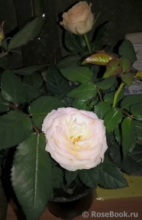 Фото не точно передает цвет, распустившийся цветок практически белый с желтыми тычинками или чуть сероватый, а бутон, нежно розовато-кремовый. Фотала при искусственном освещении, завтра попробую, при дневном запечатлеть, может будет более правильной окраска. Пахнет божественно, немного цитрусом и розами. Только она несколько уталила мою боль от увиденного. |
