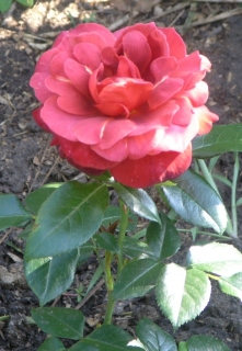 , Роза из коробки. Скорее всего флорибунда. Цвет: розово-коралловый. Цветёт кистями, во второе цветение может выдать кисть от 30 до 50 бутонов. Листочки тёмно-зелёные, матовые. Куст не широкий, высотой 70-80 см, цветы среднего размера, см 8-10. Мне казалось, что похожа на Tom-Tom. Если сунуть нос в цветок, то нежный розовый запах есть.