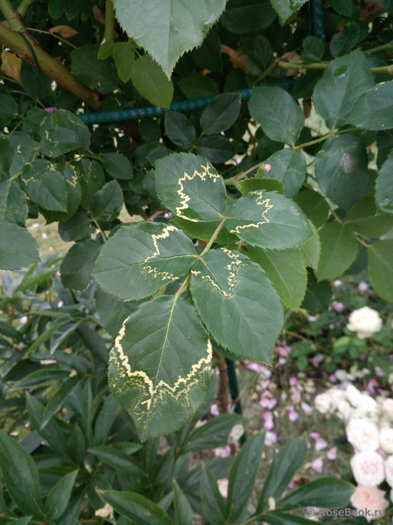 http://rose-style.ru/bolezni-roz-v-kartinkax/ Глядите, вирусная мозаика. Но я не пугаю. Выглядит похоже, но, возможно, и не она.