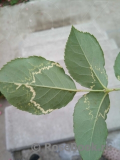 Два года назад подобный рисунок поразил у нас вишню. Но только не такой правильный, почти художественный. Листья ,почти все были пронизаны нитевидными ходами. Изучала этот вопрос и пришла к выводу,что это минирующая муха. Опрыскивала от вредителей. Так и висели такие листья,пока осенью не опали. Больше не повторяллось . На розах такого никогда не встречала.